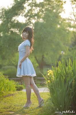 Korean Cute Model, Song Jina 송지나's lovely Outdoor Fashion with Blue Dress
